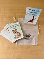 Each card has a positive affirmation along with an Australian animal design. The set also includes a wooden stand to display your daily or weekly affirmation along with a drawstring calico tote bag.